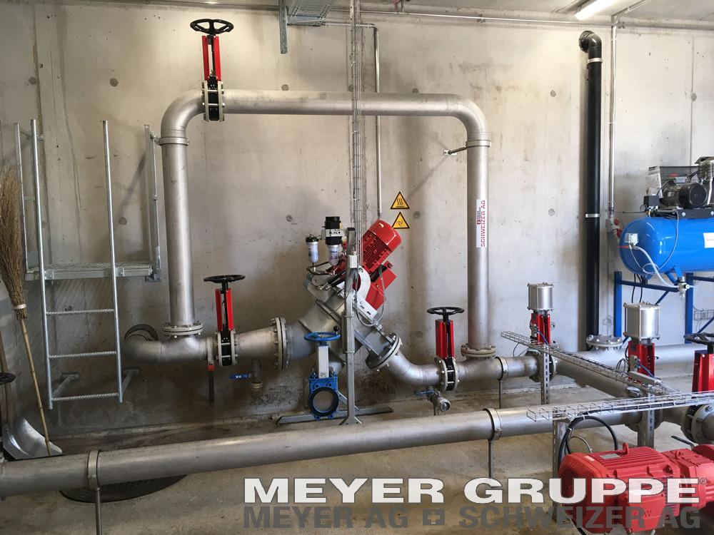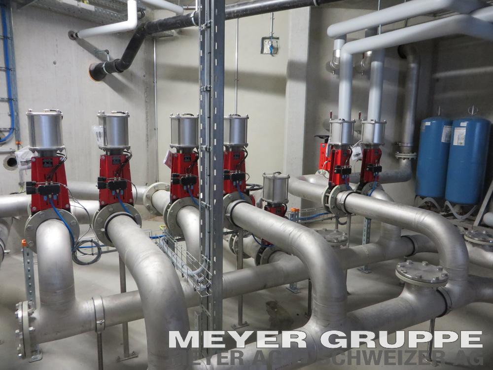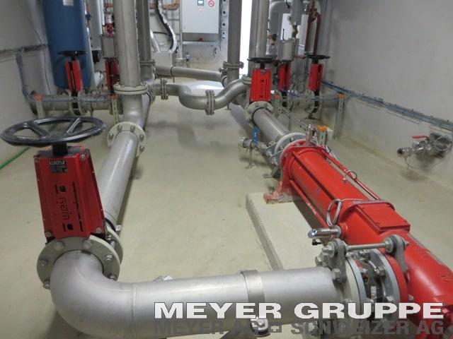 Die Verteilerbaugruppe erlaubt die Beschickung aller angeschlossenen Behälter in jede Durchflussrichtung. Die gesamte Pumpverteilung besteht aus Pneumatik-/ Handschiebern und wird über das Leitsystem zentral gesteuert.