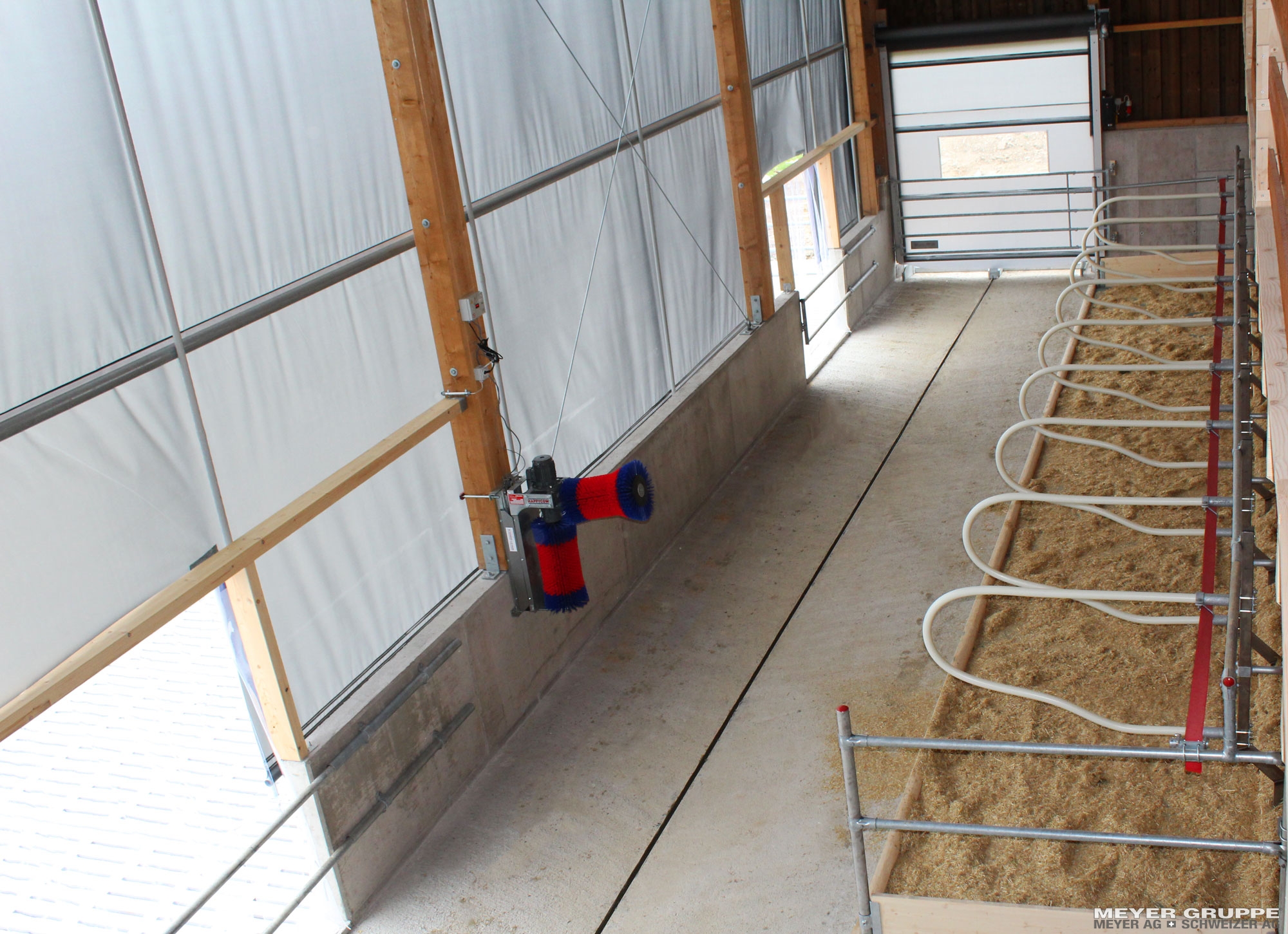 Das Untere Nutenrohr ist zum aufwickeln der Plane und einstellen der Beschattungsbreite. Die Anlage kann in aufgewickeltem Zustand ganz nach Oben gehoben werden.