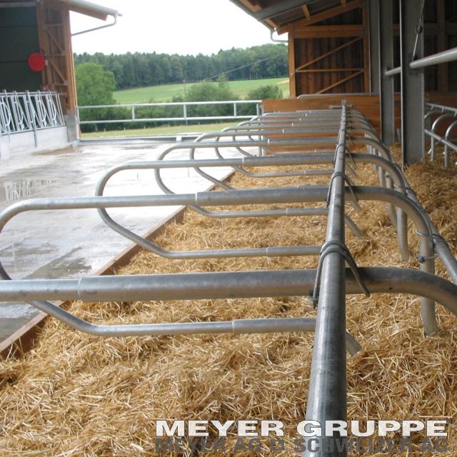 • Der freistehende Liegeboxen-Abtrennbügel MEYER bietet freien Durchgang im Kopfbereich der Liegeboxen