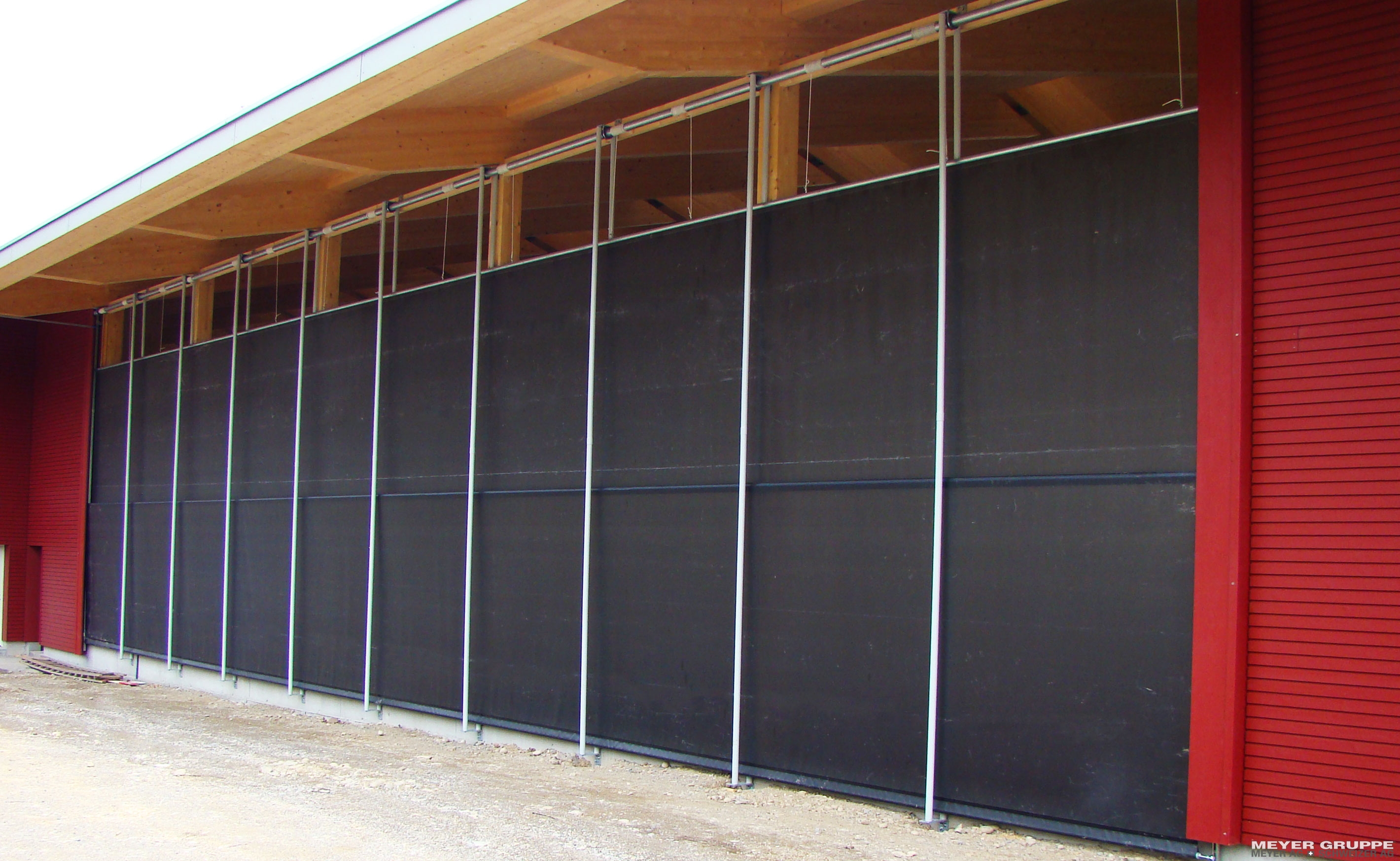 Das obere Nutenrohr wird über Hebeseile mit einem oben fest angebrachten Wickelrohr verbunden damit kann sich die Plane heben.