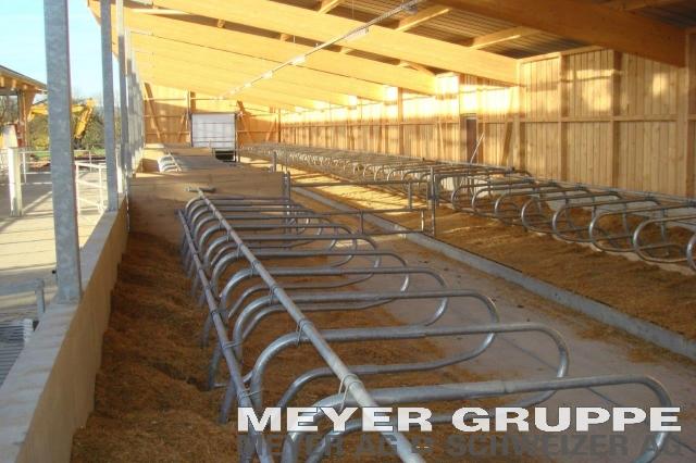 • Der freistehende Liegeboxen-Abtrennbügel MEYER bietet freien Durchgang im Kopfbereich der Liegeboxen
