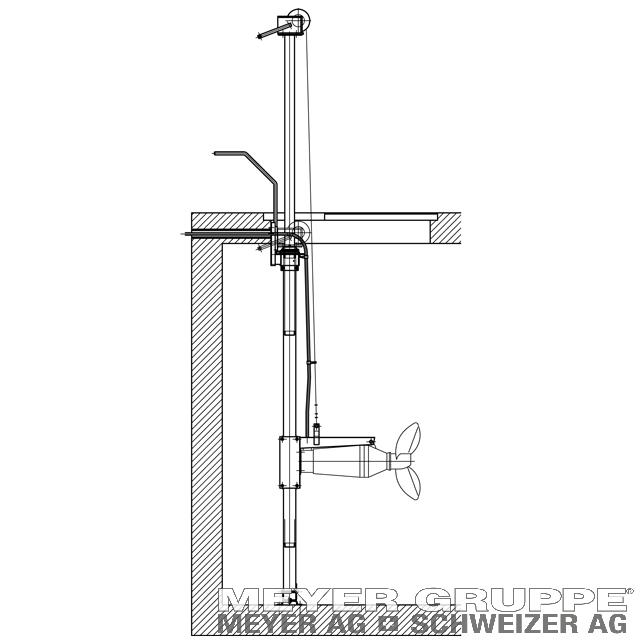 Diese Variante ist lieferbar, wenn nichts über die Grubendecke vorstehen soll (z.B. im Bereich von Durchfahrten) Das Teleskoprohr mit der aufgebauten Seilwinde kann aus dem Leitrohr herausgezogen und nach Gebrauch wieder versenkt werden. Allerdings benötigt diese Variante mehr Bedienungsaufwand! Mit dem Schwenkhebel und der Rastungsvorrichtung kann das Rührwerk horizontal geschwenkt werden. Zum Heben und Senken des Gerätes dient die aufgebaute Seilwinde. Somit kann die Rührströmung in unterschiedlicher Höhe in verschiedene Richtungen gelenkt werden. Die Bildung von Schwimmdecken oder Ablagerungen können so wirksam verhindert werden. Das 4kt-Leitrohr 100/100mm besitzt unten einen Bolzen, der am Grubenboden in einer aufgedübelten Lochplatte steckt. Die Leitrohr-Halterung oben ist an der Stirn-seite der Grubenöffnung befestigt. Die Seilschwenkaussparung in der Grubenabdeckung wird nach Gebrauch mit einem Rippenblech-Dekel abgedeckt. Alle Stahlteile im Güllebereich sind aus Chromstahl V2A gefertigt. Der elektrische Steuerungskasten wird vorteilhaft an einem witterungsgeschützten Ort montiert, womöglich in der Nähe des Rührwerkes, damit das 8m lange Kabel direkt angeschlossen werden kann.